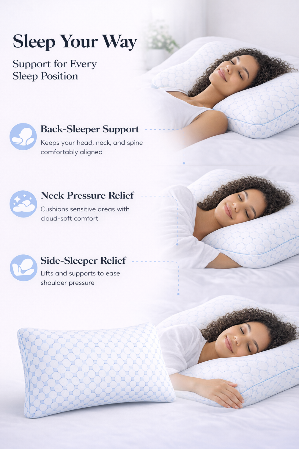 The Nivoah Float Pillow adapts to the way you sleep, gently supporting your head and neck while staying cool and breathable through the night. You wake up clear-headed, relaxed, and ready—because when your sleep is aligned, everything else follows.
